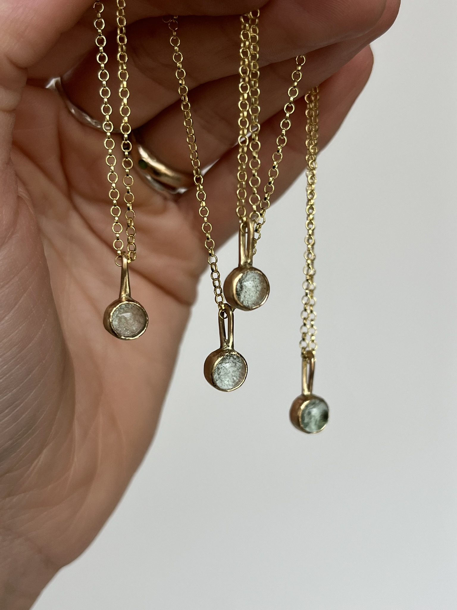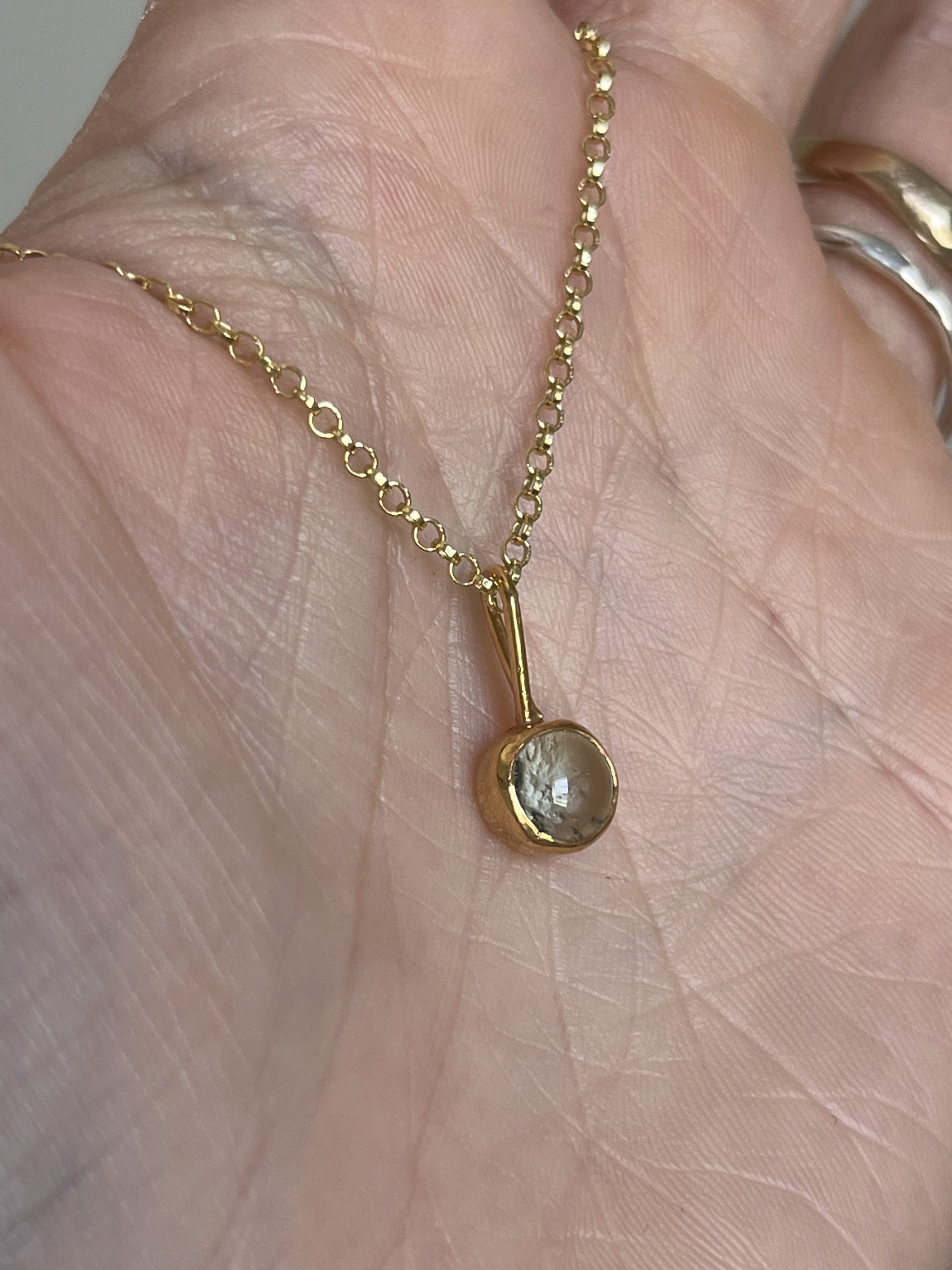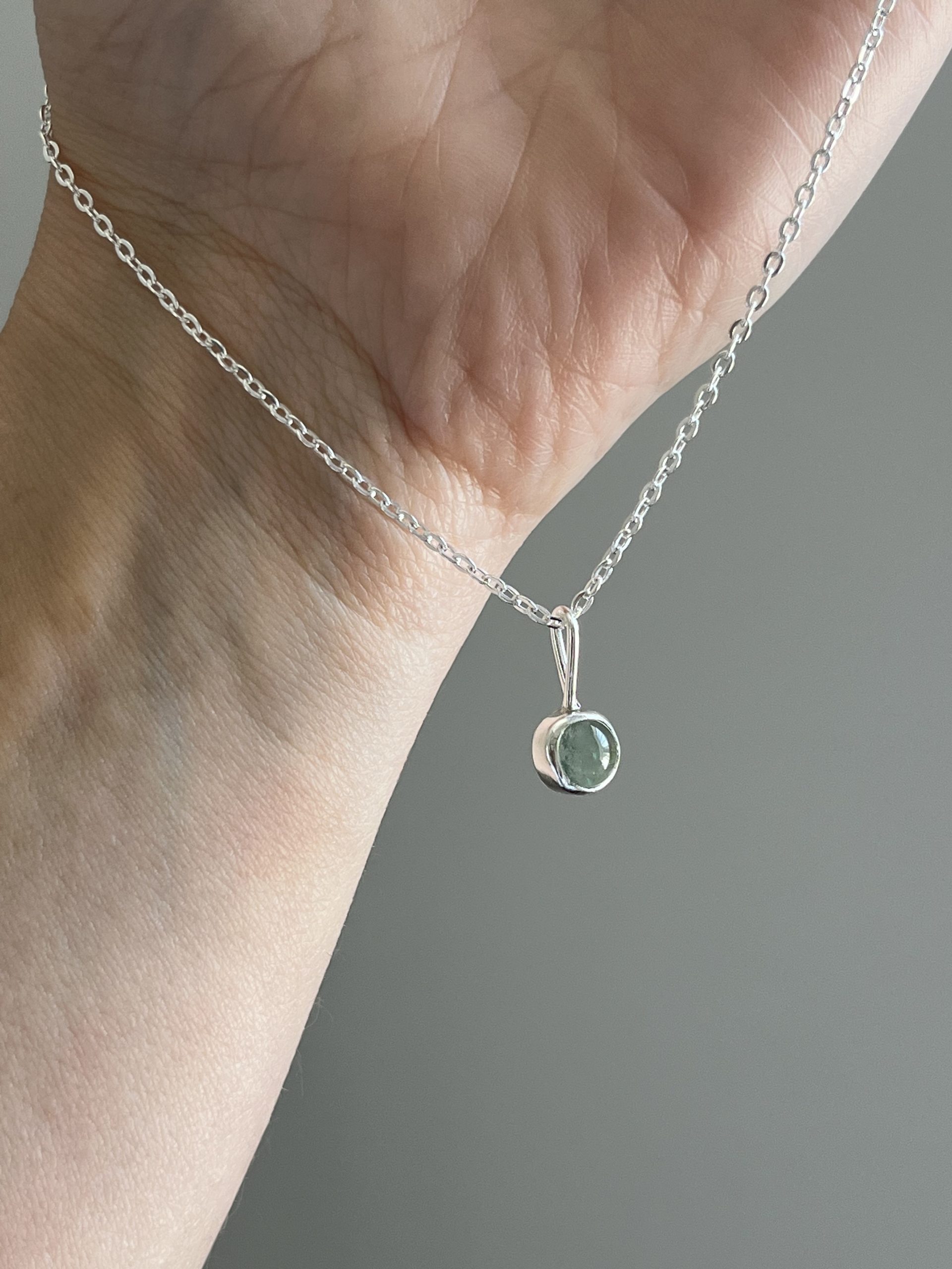 Colgante con vidrio reciclado en forma de cabujón redondo. Puedes comprar el colgante o incluir la también una cadena de 40 cm, si necesitas otra medida, escríbeme para personalizarla.