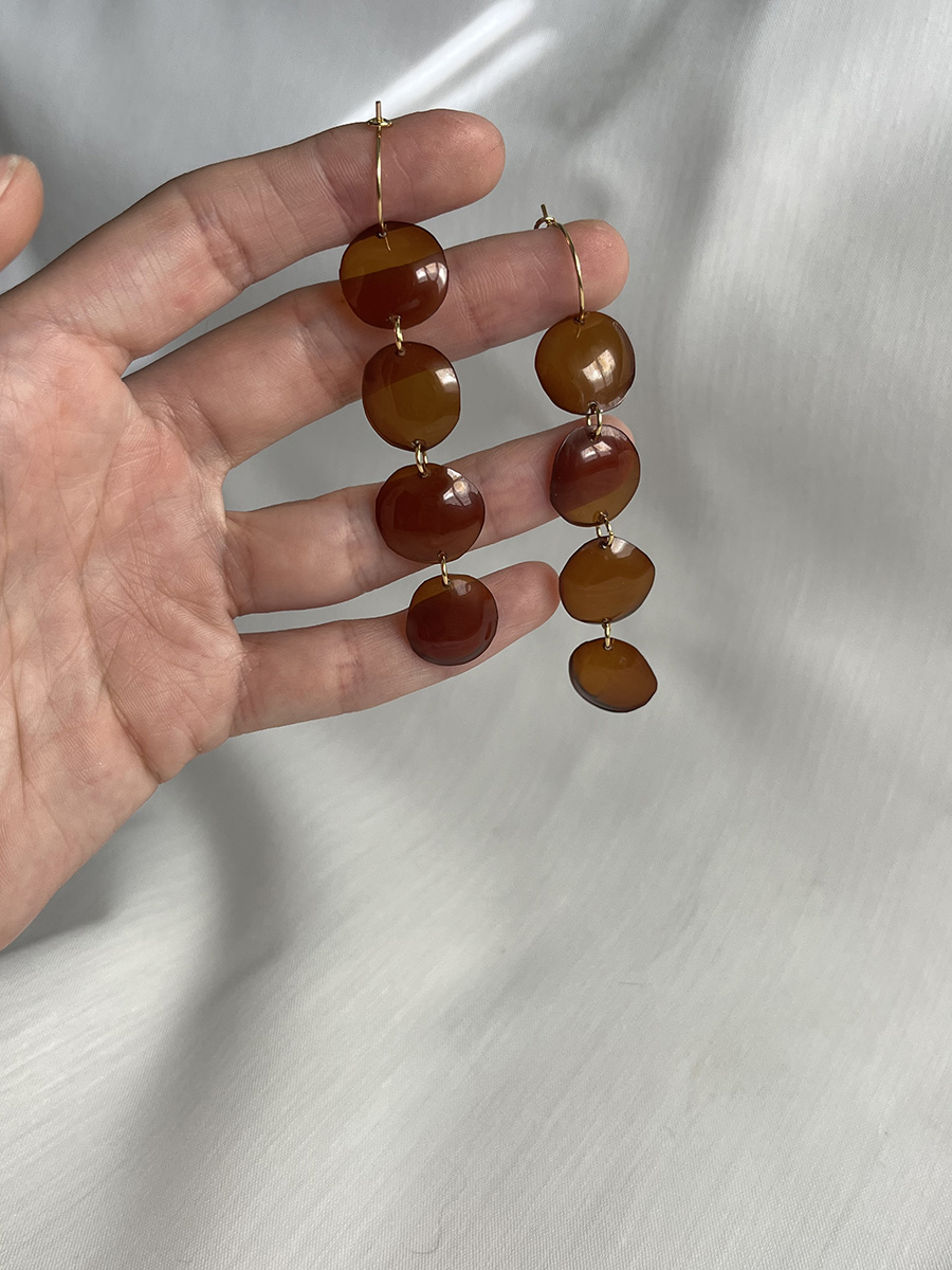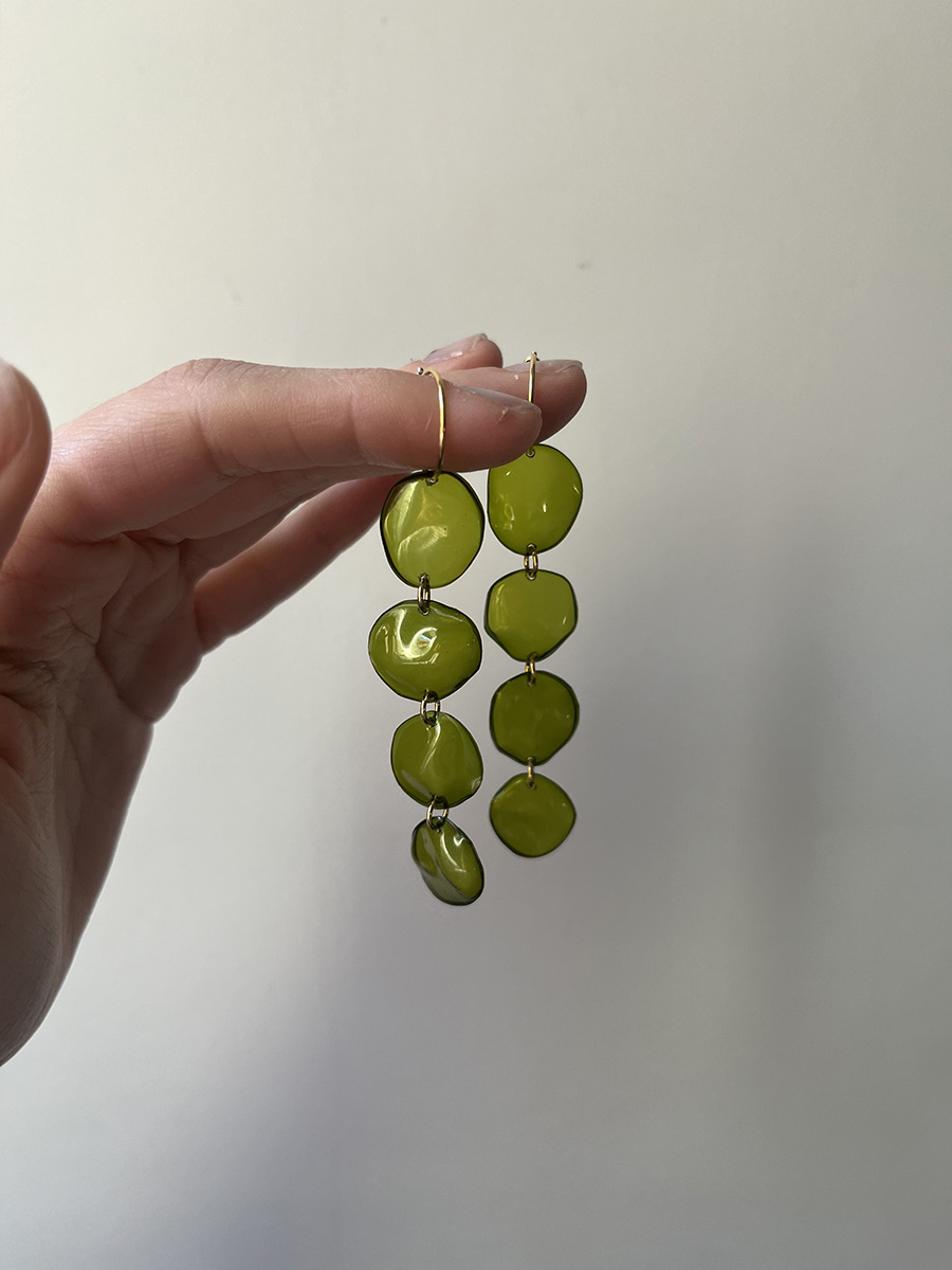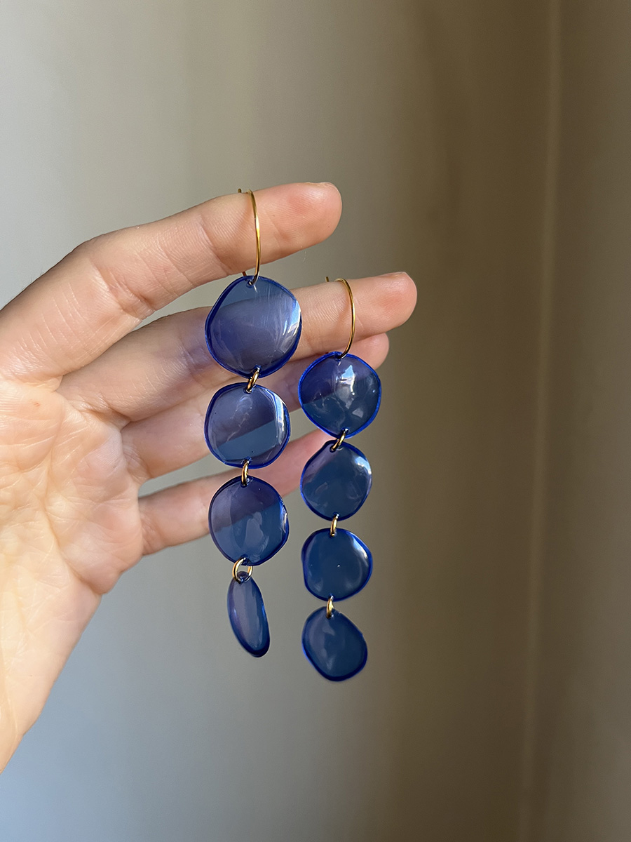 Pendientes con una longitud de 8 cm, 4 cuentas de plástico PET reciclado de forma circular. Cada pieza está hecha una a una de forma artesanal, por lo que puede haber pequeñas diferencias entre ellas. Si quieres modificar el número de cuentas o los colores, escríbeme desde “personaliza tu joya”.
